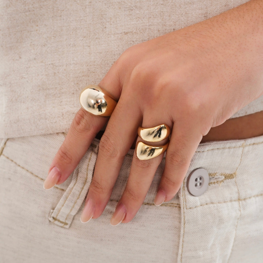 Com forma orgânica, o anel gota abaulado é a peça statement perfeita para quem busca impacto com elegância. Seu volume suave envolve o dedo com presença e feminilidade, ideal para compor looks clássicos ou modernos com um toque de brilho.
