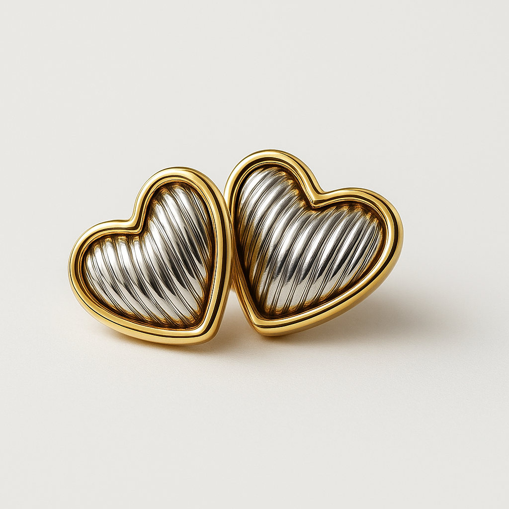Com formato de coração robusto e marcante, este brinco fixo combina o brilho elegante do ródio com o calor do ouro em uma composição moderna e cheia de personalidade. O acabamento texturizado remete ao romantismo com estilo contemporâneo.