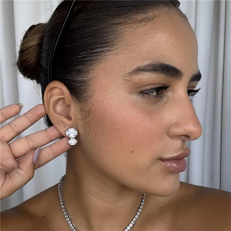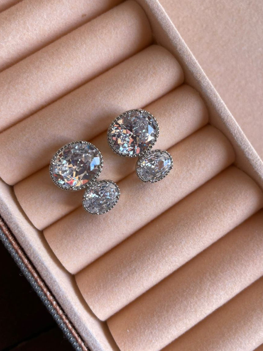 Com duas zircônias ovais de tamanhos distintos, este brinco traz luminosidade e elegância em uma peça leve e versátil. O banho em ródio realça o brilho das pedras, criando um efeito sofisticado.