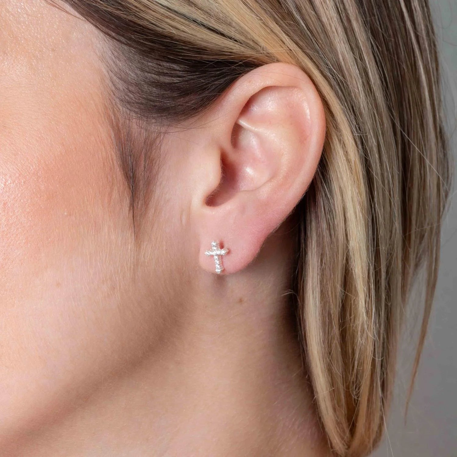 Delicado e cheio de simbolismo, este brinco em formato de cruz cravejada com zircônias é perfeito para segundo furo ou para compor mix minimalista com leveza e brilho.