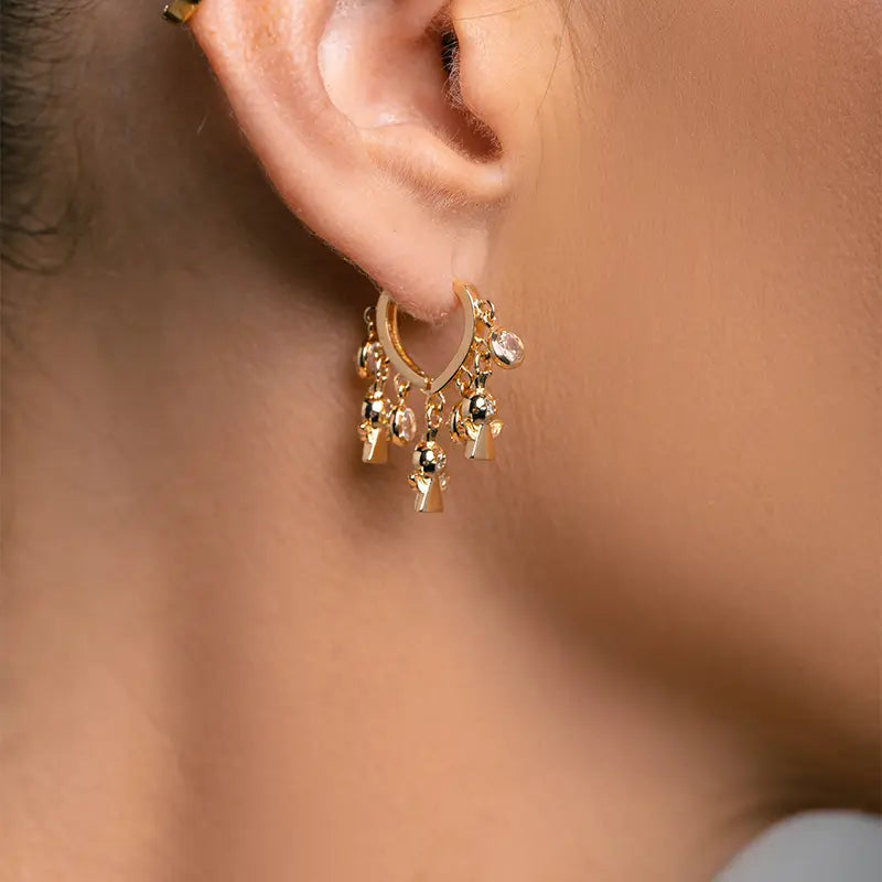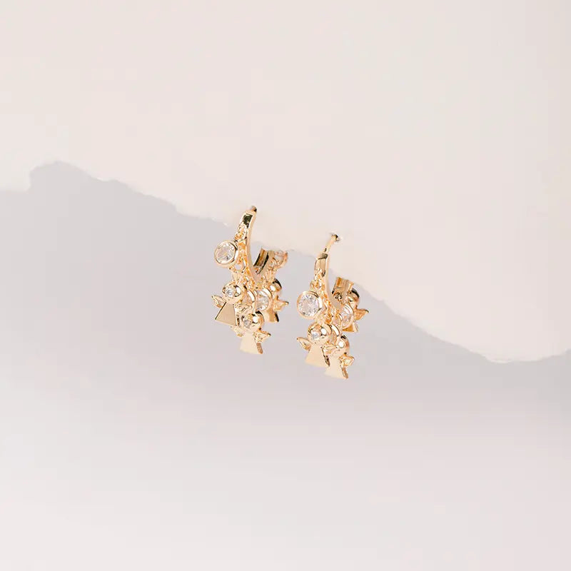 Brinco de Argola Anjinhos com Zircônia, uma peça delicada e cheia de significado. Produzido em banho de ouro, o design traz pequenos pingentes em formato de anjos acompanhados de zircônias. É o equilíbrio perfeito entre romantismo, proteção e elegância.