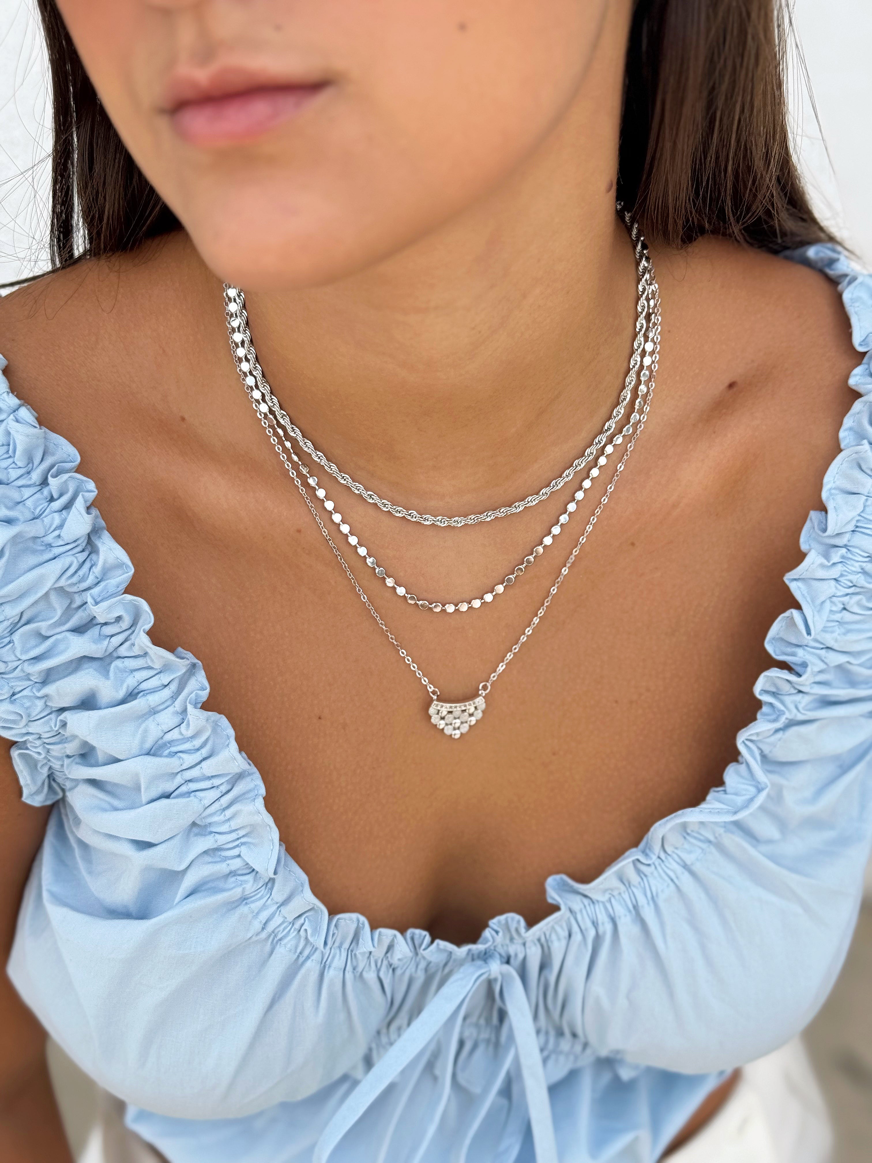 Inspirado na clássica corrente baiana, este colar traz elos torcidos com textura marcante e acabamento em banho de prata reluzente. Uma peça de presença leve e sofisticada, ideal para quem busca estilo com personalidade e versatilidade.