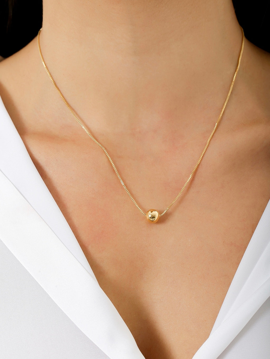 Com uma esfera polida em destaque e corrente delicada com banho de ouro, este colar é o exemplo perfeito de sofisticação minimalista. O extensor permite ajuste ideal para diferentes composições, tornando-o uma peça versátil para usar sozinha ou em composições.