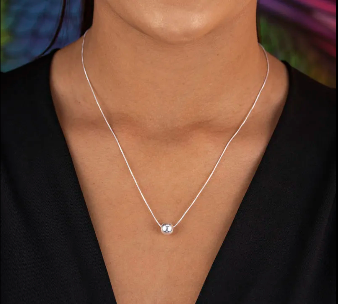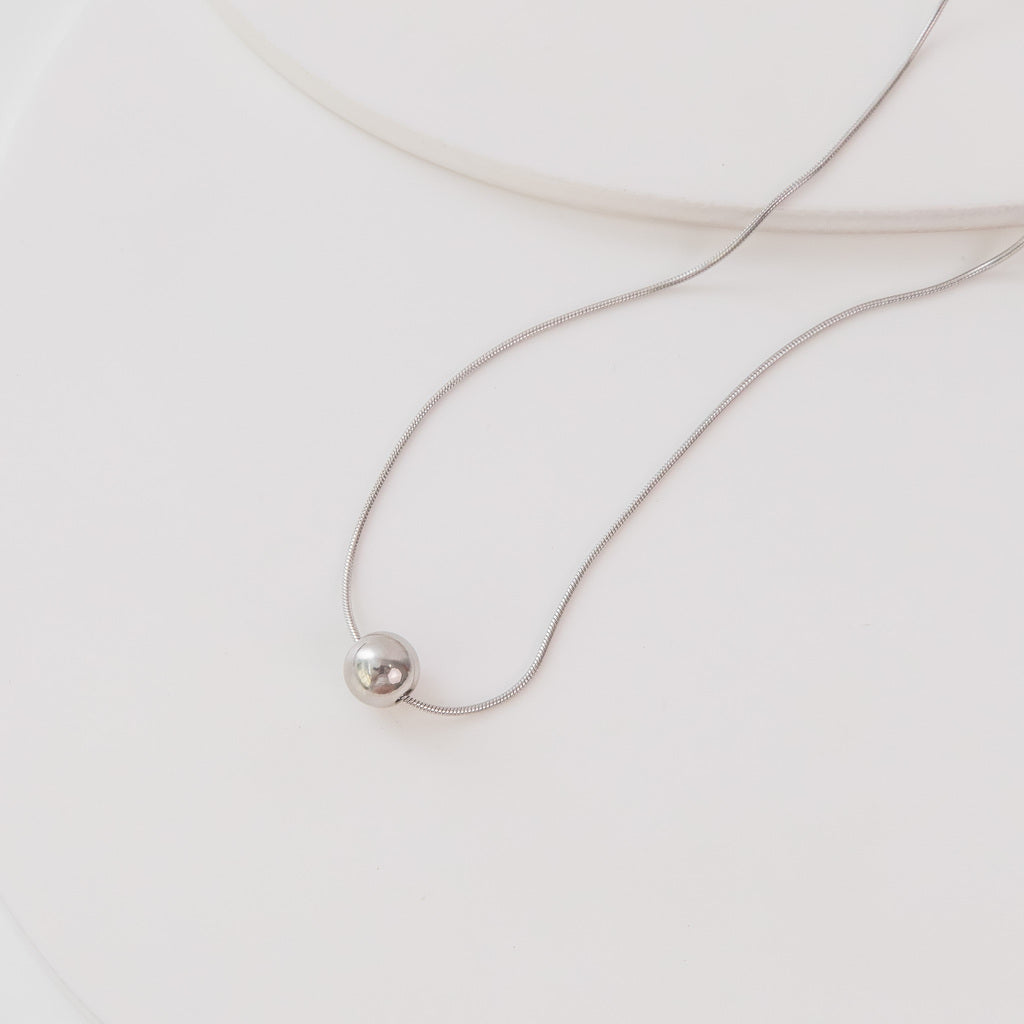 Com uma corrente delicada e uma esfera central de acabamento polido, este colar traduz a elegância discreta em sua forma mais pura. O banho de prata confere brilho suave e atemporal, ideal para mulheres que valorizam sofisticação nos detalhes.