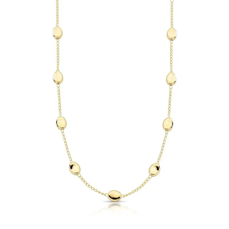 Com elos delicados intercalados por esferas ovais de acabamento polido, este colar traz uma estética orgânica e sofisticada. Seu design fluido reflete leveza e movimento, ideal para mulheres que apreciam joias minimalistas com personalidade.