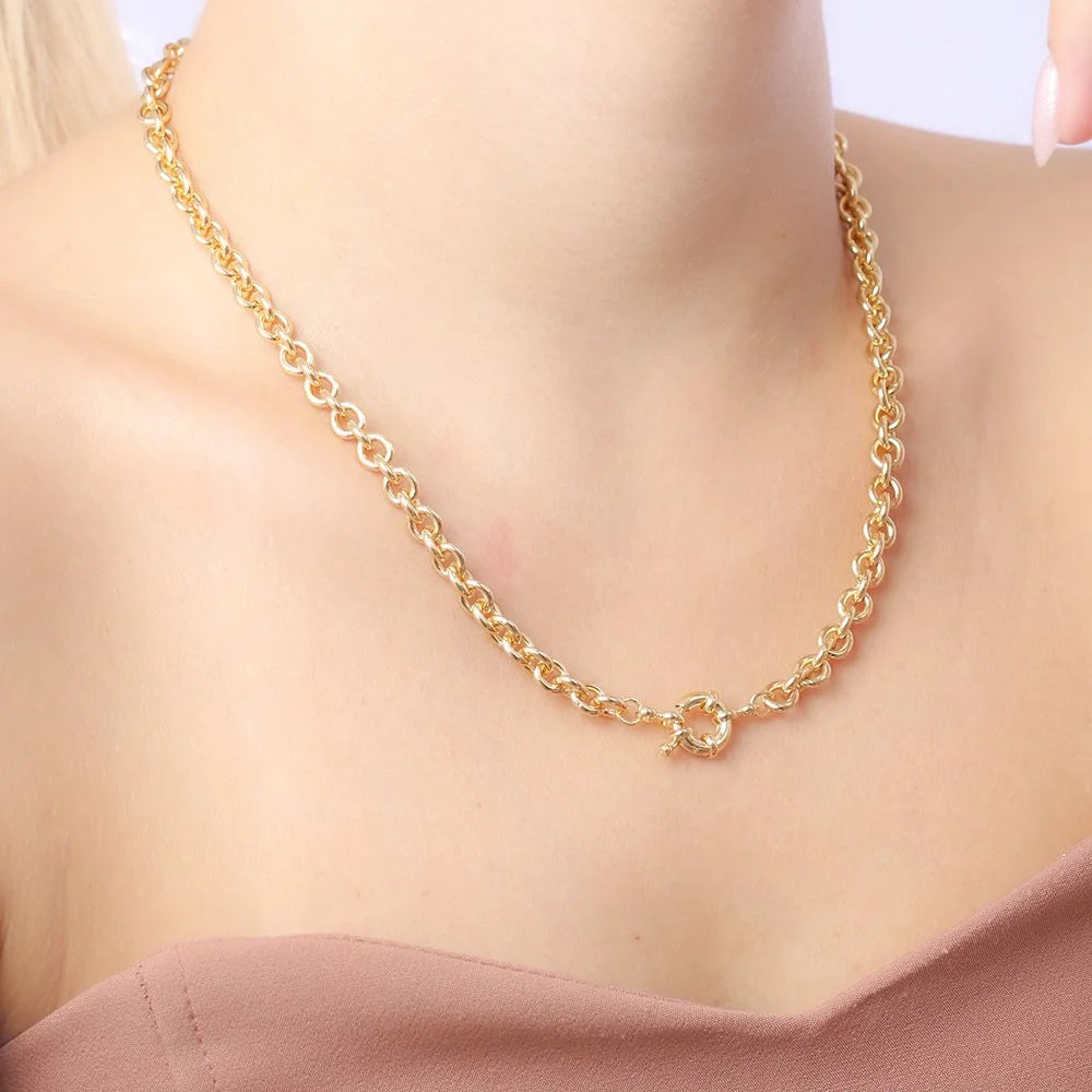 Com elos arredondados e robustos, a corrente elo português é uma peça marcante e versátil, perfeita para ser usada sozinha ou com pingentes. O fecho bóia adiciona um toque de estilo e praticidade, reforçando o design elegante e funcional.